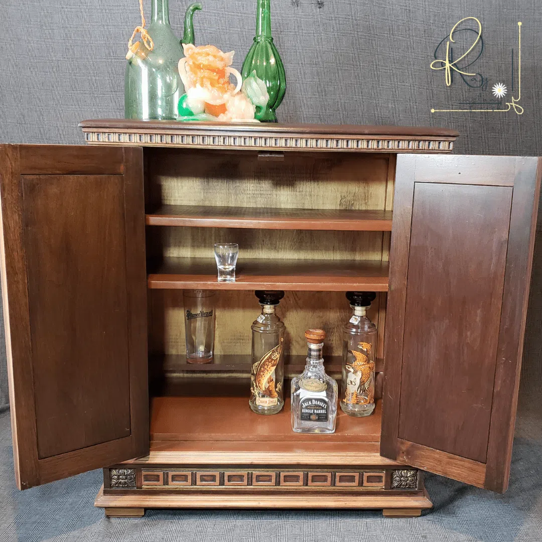 This is a gorgeous, stand-out piece that screams “high-end” and classy. A one-of-a-kind antique radio-turned-bar-cabinet is a real conversation starter.