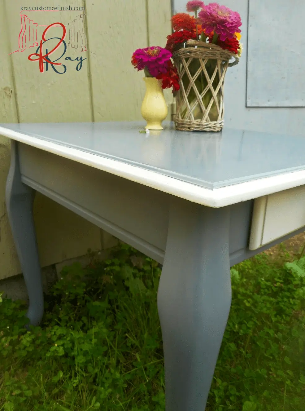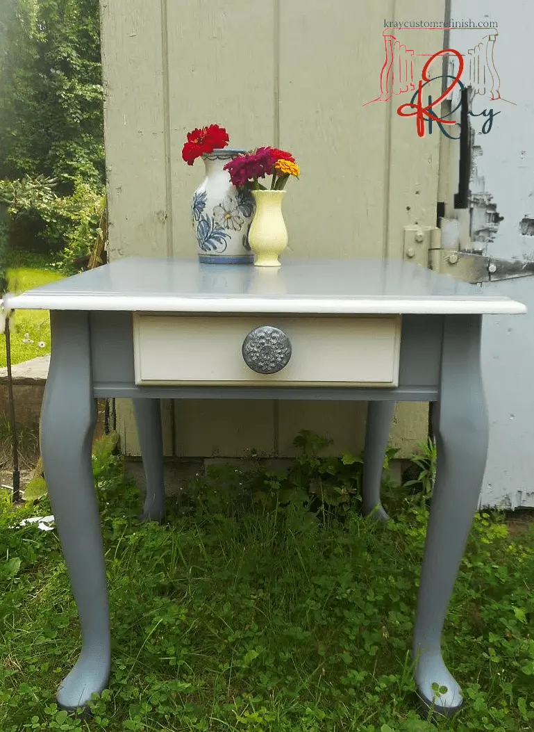 A simple yet perfect addition to any decor, this hand-painted gray side table drawer is simply beautiful. Gray & white chalk paint cover this wood side table, sealed with a matte finish sealer.